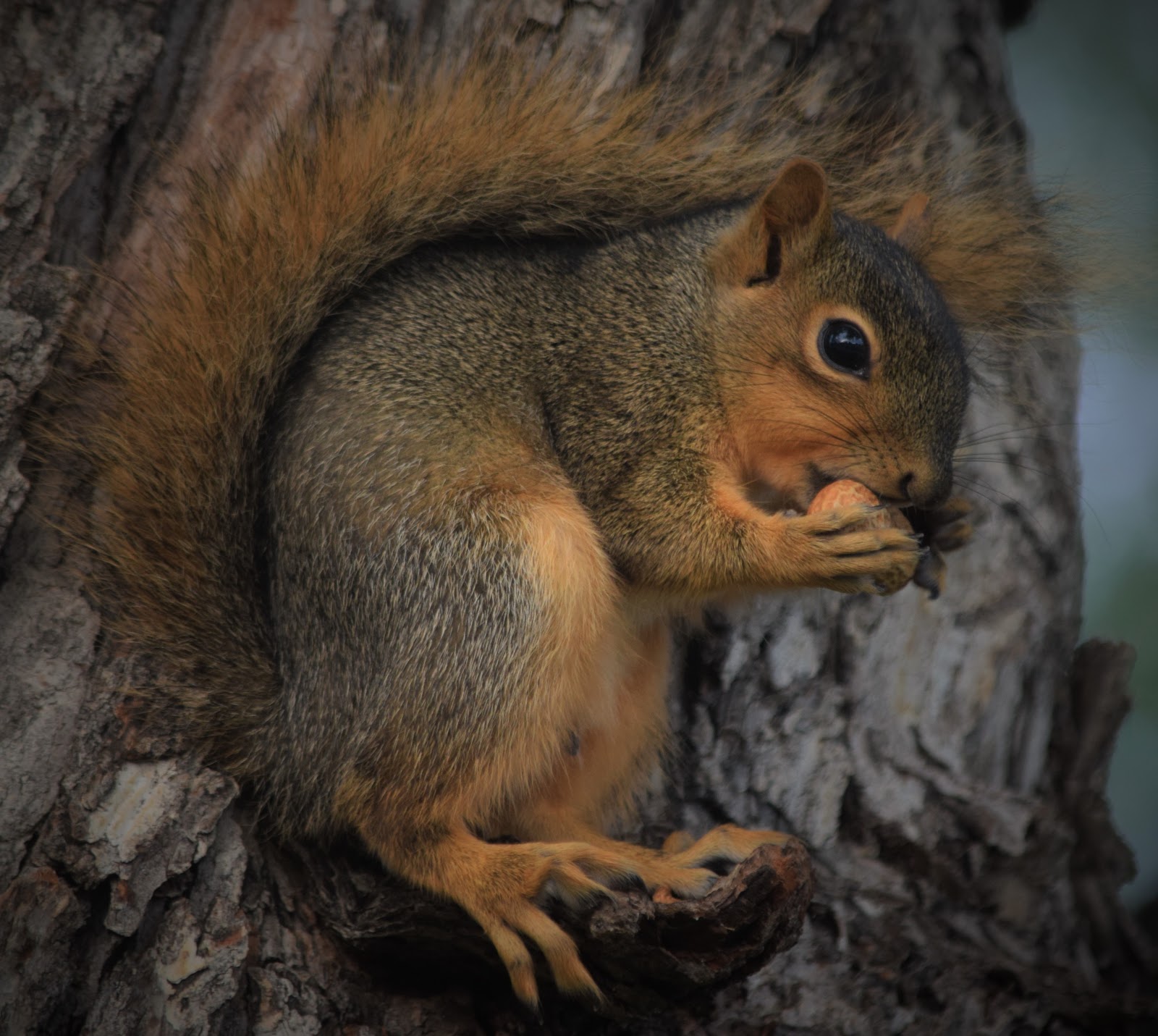 Emma may be one of the smaller creatures in the house (the African Dwarf Frog and hermit crabs haver her beat in that category) but she holds her own. She is creative in her defense. One of the cats loves to tease her by sliding her paw near Emma's food dish. The cat doesn't want the food, she just likes to tease Emma. A few days ago, Emma responded by dragging all of her stuffed animals to fhe food dish and stuffing them one by one on top of her food. She could no longer reach her food, and her toys were covered with kibble, but when she was done she was so proud of her accomplishment that she turned her back on the cat (who you can see in the background to the left) and kicked imaginary sand in her face! Photo by Darla Sue Dollman.